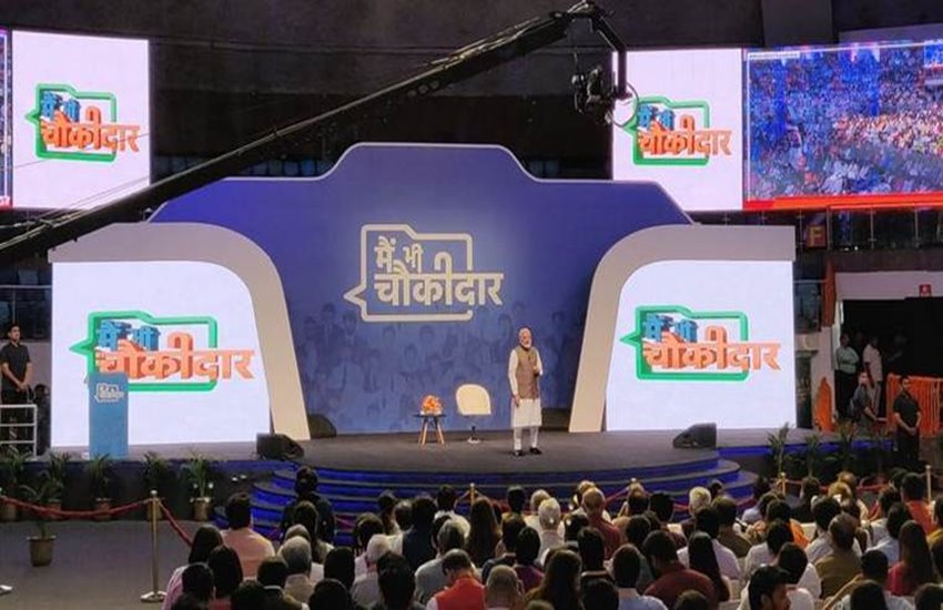 चौकीदार पर ये बोले पीएम: दिल्ली के तालकटोरा में बोलते हुए पीएम मोदी ने कहा, “चौकीदार न कोई व्यवस्था है, न कोई यूनिफॉर्म की पहचान है न कोई चौखट में बंधा है। चौकीदार एक स्प्रिट है, एक भावना है” आगे उन्होंने कहा, “आज देशभर में करीब 500 से अधिक स्थानों पर इसी प्रकार से देश के लिए कुछ कर गुजरने वाले, देश के सम्मान में ही अपना गर्व अनुभव करने वाले लाखों लोगों से तकनीक के माध्यम से मुझे मिलने का सौभाग्य मिला है।”