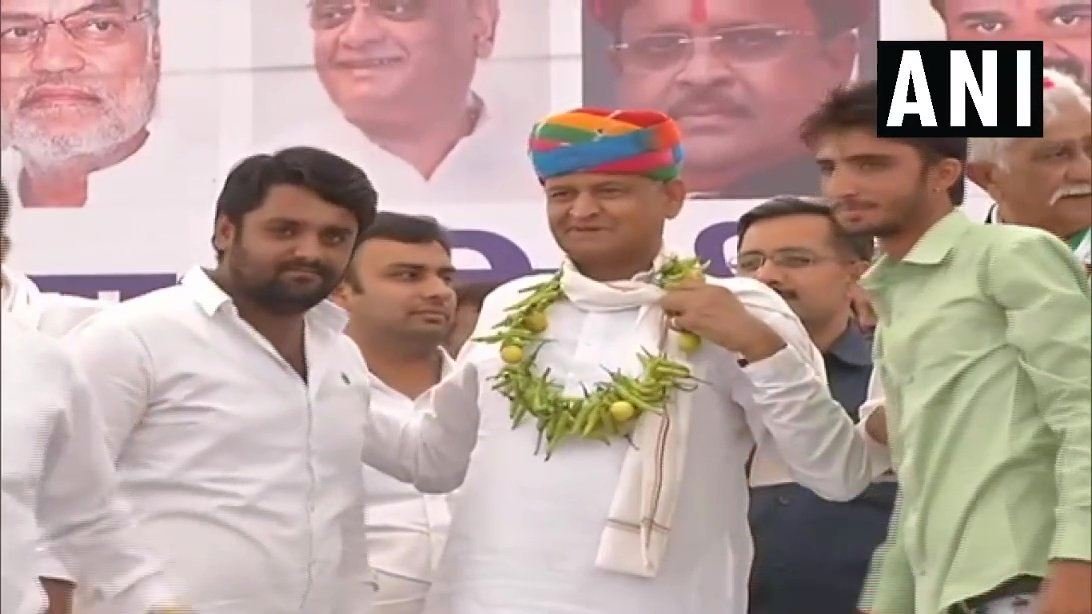 राजस्थान के मुख्यमंत्री अशोक गहलोत सोमवार को एक कार्यक्रम में शामिल हुए। इस दौरान उन्हें नींबू और मिर्च की माला पहनाई गई। बताया जा रहा है कि यह कार्यक्रम भीलवाड़ा में एनएसयूआई कार्यकर्ताओं ने आयोजित किया था।