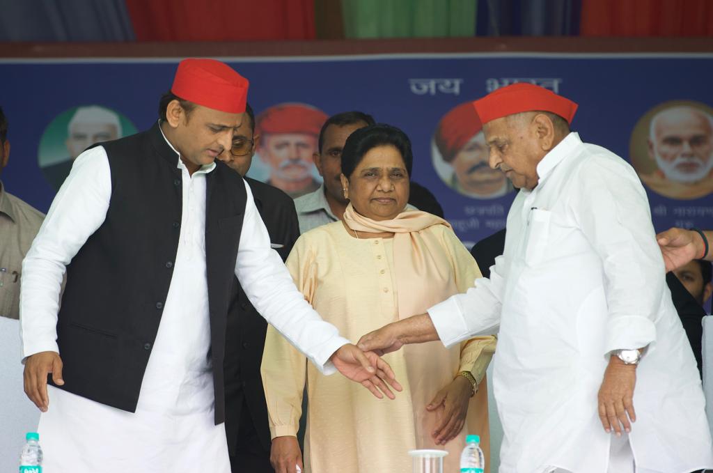 मैनपुरी में जारी गठबंधन की रैली में मुलायम सिंह यादव ने कहा- हम मायावती जी का आदर करते हैं। हमें ख़ुशी है कि वो हमारे समर्थन में यहाँ आई।
