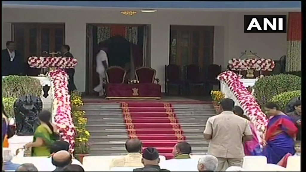 तेलंगाना में केसीआर के शपथ ग्रहण समारोह के लिए हैदराबाद स्थित राज भवन पर तैयारियां पूरी कर ली गई हैं। मेहमान भी पहुंच चुके हैं। बस कुछ ही क्षणों में केसीआर सीएम पद की शपथ लेंगे। (फोटोः ANI)