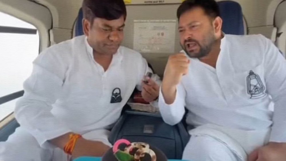बिहार की राजनीति में तेजस्वी यादव और मुकेश साहनी की सियासी केमिस्ट्री इस समय चर्चा का विषय बनी हुई है। जब से दोनों दलों का गठबंधन हुआ है, कई मौकों पर इन दोनों को साथ में देखा गया है। इस समय सोशल मीडिया पर तेजस्वी यादव और मुकेश सैनी का एक और वीडियो काफी वायरल है। वायरल वीडियो में दोनों नेता हेलीकॉप्टर में बैठकर केक काट रहे हैं। वीडियो की शुरुआत में मुकेश सहनी, तेजस्वी यादव से खास बातचीत भी कर रहे हैं।