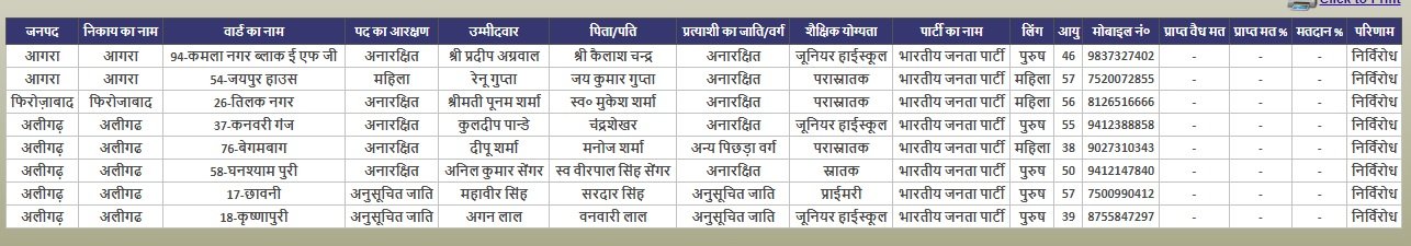 पढें: यूपी नगर निकाय चुनाव में BJP का डंका, निर्विरोध जीते 8 नगर निगम पार्षद, जानें कहां- किसकी बढ़त