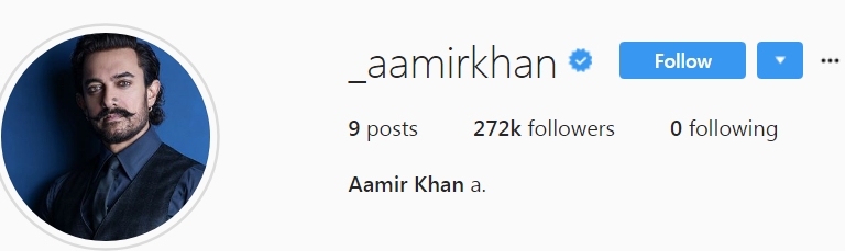 अपने वेरिफाइड इंस्टाग्राम पेज पर आमिर खान ने अपकमिंग फिल्म ‘ठग्स ऑफ हिंदोस्तान’ के लुक से प्रेरित प्रोफाइल फोटो लगाई है। आमिर खान के ट्विटर पर 23 मिलियन, जबकि फेसबुक पर 15 मिलियन यूजर्स फॉलोअर्स हैं। आमिर खान इन दिनों अपनी फिल्म ‘ठग्स ऑफ हिंदोस्तान’ की शूटिंग में बिजी हैं। ‘ठग्स ऑफ हिंदोस्तान’ में अमिताभ बच्चन के साथ कैटरीना कैफ, फातिमा सना सेख और आमिर खान भी नजर आएंगे। यशराज प्रोड्क्शन के बैनर तले बन रही इस फिल्म का निर्देशन विजय कृष्ण आचार्य कर रहे हैं। फिल्म दिवाली के मौके पर सिनेमाघरों में रिलीज की जाएगी।