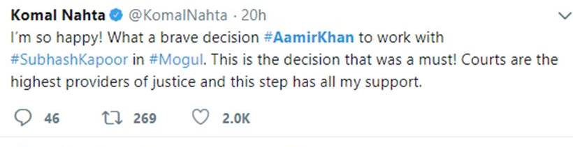 आमिर ने एच टी को दिए इंटरव्यू में बताया-‘ किरण और मैं मोगुल को प्रोड्यूस कर रहे थे। मैं फिल्म में एक्टिंग भी कर रहा था। हम जब इस फिल्म को कर रहे थे तो हम इस बात से वाकिफ नहीं थे कि निर्देशक सुभाष कपूर के खिलाफ केस चल रहा है। मुझे लगता है कि उनका वह केस करीब 5-6 साल पुराना था, हम उस वक्त मीडिया में भी ज्यादा नहीं थे।’