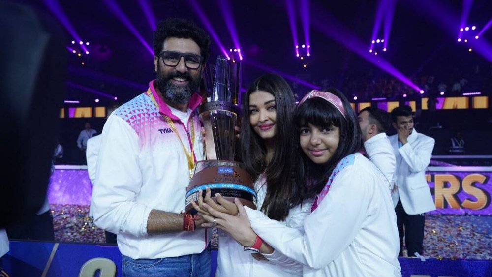इस खास मौके की शानदार तस्वीरों में अभिषेक, ऐश्वर्या और आराध्या अपनी टीम के विनर बनने से काफी एक्साइटेड नजर आ रहे हैं। एक तस्वीर में प्रो कबड्डी लीग की ट्रॉफी के साथ आराध्या नज़र आ रही हैं। वो ट्रॉफी के साथ पोज़ देती नज़र आ रही हैं। वहीं एक तस्वीर में अभिषेक,ऐश्वर्या और आराध्या ट्रॉफी के साथ तस्वीर खिंचवाते नज़र आ रहे हैं। ऐश्वर्या राय और उनकी बेटी आराध्या अपनी टीम को सपोर्ट और चीयर करने के लिए टीम यूनिफॉर्म में पहनी हुई थी।