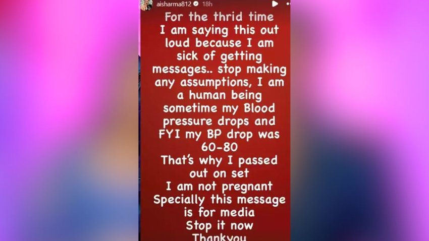 दरअसल, ऐश्वर्या शर्मा ने प्रेग्नेंसी की खबरों पर रिएक्शन देते हुए इंस्टाग्राम स्टोरी पर एक पोस्ट शेयर की है। इसे साझा करने के साथ ही उन्होंने लिखा कि वो तीसरी बार मना कर रही हैं कि प्रेग्नेंट नहीं हैं। वो लगातार आ रहे मैसेज से परेशान हो गई हैं। एक्ट्रेस ने गुस्से में कहा कि अपनी तरफ से अनुमान लगाना बंद करो। ऐश्वर्या ने पोस्ट में आगे लिखा कि वो भी एक इंसान हैं और इन सब चीजों से परेशान हो सकती हैं। उनका बीपी डाउन हो सकता है, चक्कर आ सकता है। सेट पर काम करते हुए उन्हें चक्कर आ गया था। क्योंकि उनका बीपी डाउन हो गया था ना कि प्रेग्नेंसी की वजह से बेहोश हुई थीं। उन्होंने अंत में कहा कि अफवाह फैलाना बंद करो।