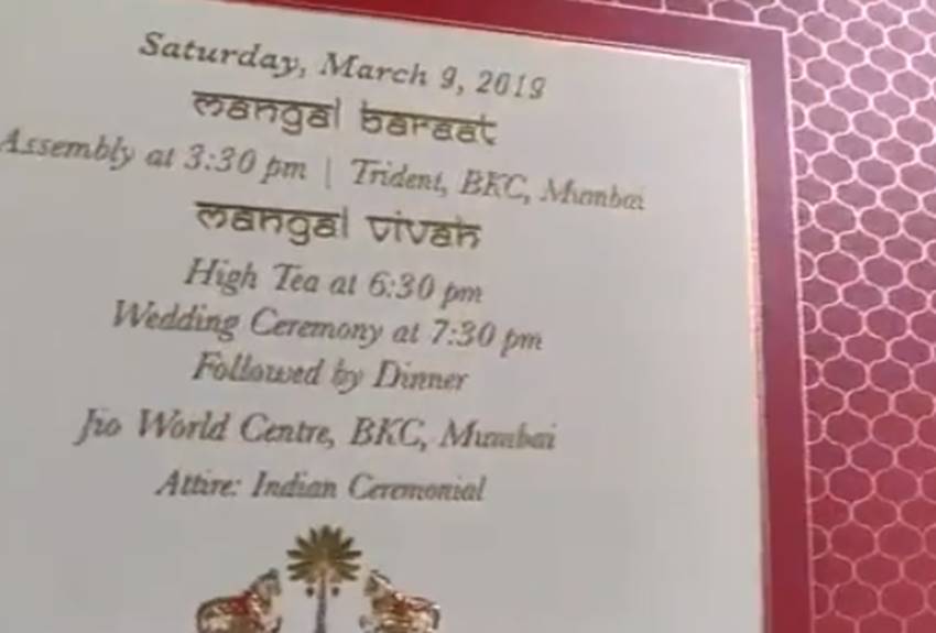 बता दें, मुंबई के सिद्धिविनायक मंदिर में आकाश-श्लोका की शादी का पहला कार्ड भगवान के चरणों में चढ़ाया गया। वहीं अब ये कार्ड्स खास मेहमानों को दिए जा रहे हैं। ऐसे में कई मेहमानों ने इस शादी के कार्ड की तस्वीरें और वीडियोज सोशल मीडिया पर अपलोड करना शुरू कर दिया। इस कार्ड की खासियत यह है कि पहला पन्ना खोलते ही इसमें से एक मधुर कृष्ण धुन बजती है। वहीं दूसरा पन्ना खोलते ही श्रीकृष्ण की बेहद खूबसूरत छवि नजर आती है।