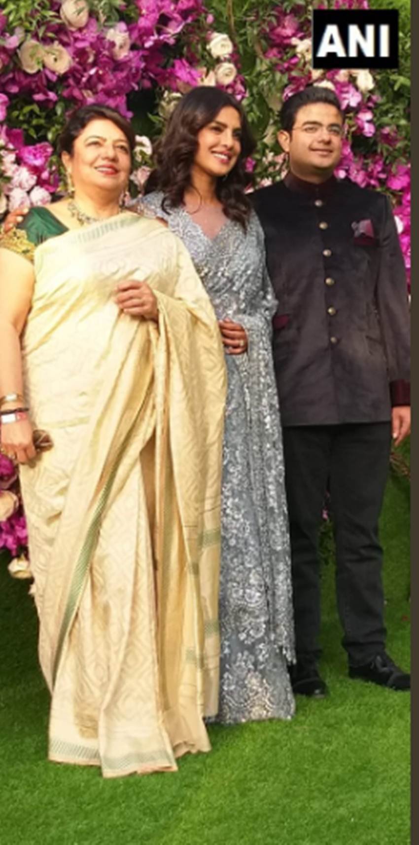 मशहूर अभिनेत्री प्रियंका चोपड़ा अपनी मां और भाई के साथ इस शादी में शामिल होने के लिए पहुंची हैं।