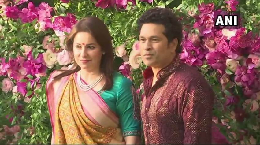 शादी में मास्टर-ब्लास्टर सचिन तेंदुलकर अपनी पत्नी के साथ पहुंचे।