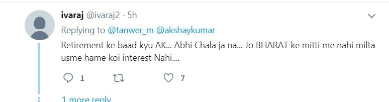 मीडिया रिपोर्ट्स के मुताबिक, यह पुराना वीडियो टोरंटो में आयोजित एक इवेंट का है। जिसमें अक्षय कुमार वहां से लोगों से मिले प्यार और कनाडा को पसंद करने की बात कह रहे हैं। वीडियो में अक्षय कहते हैं, ”मैं आपको एक और चीज बताना चाहता हूं कि टोरंटो मेरा घर है। मैं फिल्म इंडस्ट्री से रिटायर होने के बाद यही वापस आकर बस जाऊंगा।” अक्षय कुमार के इस वीडियो को देखने के बाद लोग अपनी नाराजगी जाहिर कर रहे हैं। एक यूजर ने लिखा- देशद्रोही पैसे कमाकर भाग जाएगा। राहुल गांधी और प्रियंका गांधी आप भी ऐसा ही करेंगे तो बता दीजिए। वहीं एक अन्य यूजर लिखता है- तुम भारतीयों को ज्ञान मत दो।