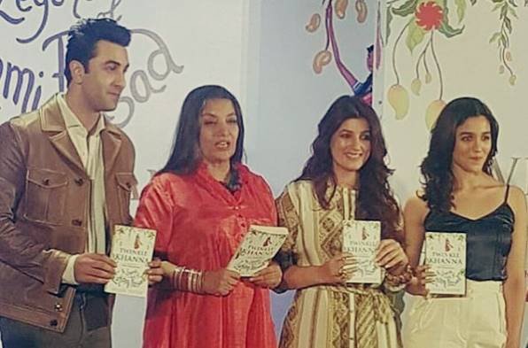 इस सितारों भरी शाम में चार चांद लगाने के लिए अभिनेता रणवीर कपूर और आलिया भट्ट भी पहुंचे थे। इन दोनों ने स्टेज पर आकर किताब के कुछ चैप्टर्स के कुछ हिस्से भी पढ़े। इसके अलावा इस इवेंट में शबाना आजमी, सोनाली बेंद्रे, निर्देशक अभिषेक कपूर, फराह खान भी इस फंक्शन में मौजूद रहे। एक्टिंग की दुनिया से इंटीरियर डिजाइनिंग में आईं और अब बुक राइटिंग कर रहीं ट्विंकल बेहद खुशमिजाज और नया खोजते रहने वाली महिला हैं। इस पूरे कार्यक्रम के दौरान अपनी पत्नी को सपोर्ट करने के लिए अक्षय पूरे वक्त ट्विंकल के साथ थे। इस दौरान डिंपल कपाड़िया को अपनी बेटी पर हो रहा फक्र उनके चेहरे पर साफ नजर आ रहा था। बेटा आरव कैमरा के सामने मौज मस्ती करता दिखा।
