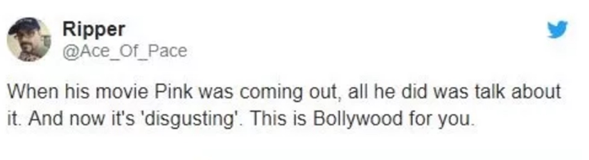 बिग बी के इस जवाब से सोशल मीडिया पर अच्छा असर नहीं पड़ा है। इस मामले में कुछ न बोलने पर यूजर्स ने अमिताभ पर ऐसे गंभीर मामले में चुप्पी साधने का ताना मारा। इतना ही नहीं कई लोगों ने तो ये तक कहा कि अमिताभ ‘पिंक’ जैसी फिल्में बनाते हैं, लेकिन ऐसे मामले में सवाल पूछे जाने पर उनसे ऐसे रिएक्शन की उम्मीद नहीं थी।बता दें, अमिताभ और ऋषि कपूर दोनों अपनी फिल्म 102 नॉट ऑउट के गाने बाडुंबा के लॉन्चिंग इवेंट में पहुंचे थे। इस गाने में अमिताभ और ऋषि कपूर दोनों बहुत ही फनी नजर आ रहे हैं। गाना देखने के लिए यहां क्लिक करें- 102 Not Out: अमिताभ बच्चन-ऋषि कपूर की आवाज में रिलीज हुआ Badumbaaa, इंटरनेट पर मचा रहा धूम