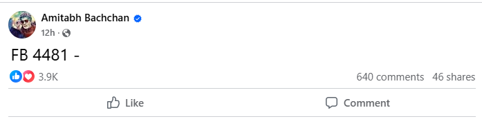 दरअसल अमिताभ बच्चन ने फेसबुक पर एक ब्लैंक पोस्ट किया है। जिसके पीछे की भावना उनके फैंस समझ पा रहे हैं। फैंस ये पता लगा पा रहे हैं कि बिग बी धर्मेंद्र को लेकर दुखी हैं। तमाम लोगों ने कमेंट कर के उनका दर्द साझा किया है।