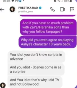 हालांकि इन स्क्रीनशॉट्स को लेकर कोई आधिकारिक जानकारी नहीं है और अब तक इस पर ना ही प्रीतिका और ना हर्षद ने रिएक्ट किया है। मगर चैट्स के इन स्क्रीनशॉट ने इंटरनेट पर हलचल जरूर मचा दी है। कई लोगों ने प्रीतिका का इस तरह हर्षद पर आरोप लगाना सही नहीं लगा। उनका कहना है कि अपने किसी शादीशुदा को-एक्टर पर इस तरह के आरोप लगाना सही नहीं है, वो भी किसी फैन से।