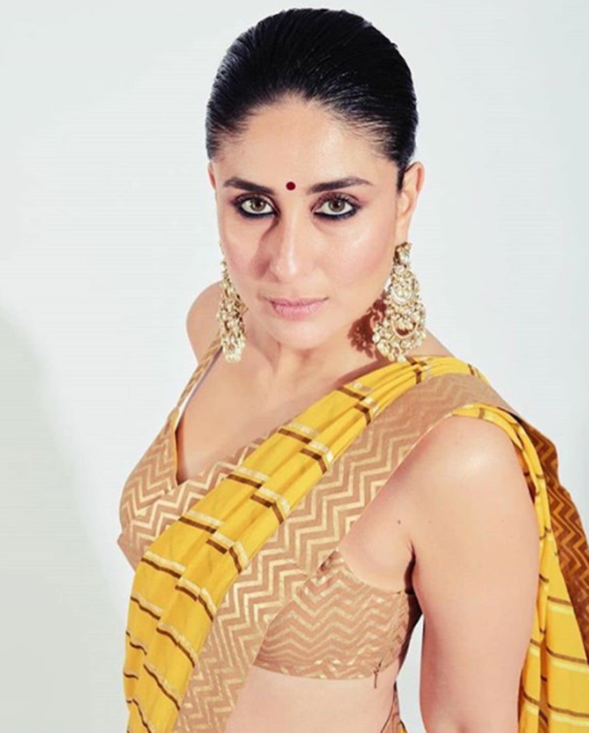 करीना कपूर खान की ये येलो साड़ी वाला सिंपल लुक सोशल मीडिया पर वायरल हो रहा है। करीना ने मेहरून सिंपल बिंदी लगाई है और बन बना कर गजरा लगाया है। इस लुक की काफी तारीफें हो रही हैं।