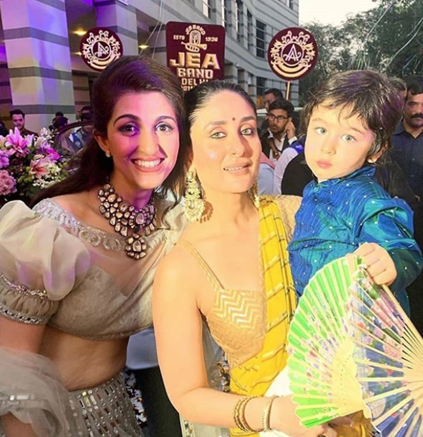 करीना कपूर और करिश्मा का स्टाइल और स्वैग अरमान जैन की बारात में देखने को मिला। करीना कपूर खान ने साड़ी के साथ बालों में गजरा भी लगाया हुआ है। करीना पीले रंग की साड़ी में नजर आईं। वहीं करिश्मा पिंक कलर की सिल्क साड़ी में दिखीं।