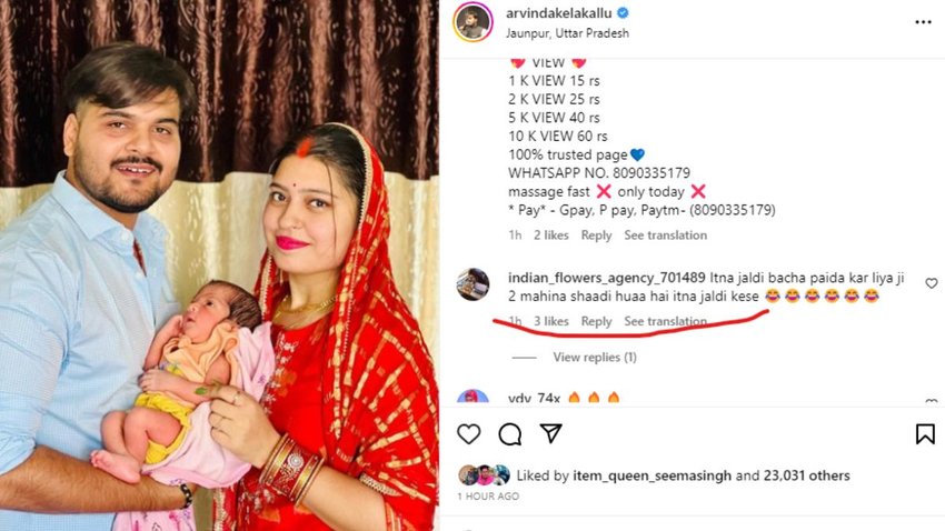 अरविंद अकेला कल्लू ने इंस्टाग्राम पर पत्नी और बच्चे के साथ फोटोज को शेयर किया है। इसमें उनकी जोड़ी बेहद ही प्यारी लग रही है। साथ ही बच्चे की पहली झलक भी दिखाई है। कल्लू को इस तरह वाइफ के साथ देख फैंस की खुशी का ठिकाना ही नहीं रहा है। लोग जमकर कमेंट्स कर रहे हैं। शिवानी के साथ यूं साथ देखकर फैंस काफी खुश हैं। लोग बच्चे की किलकारी के लिए उन्हें ढेरों शुभकामनाएं दे रहे हैं। साथ ही एक यूजर ने ये तक पूछ लिया कि ‘अभी तो महीने पहले ही शादी हुई फिर इतने जल्दी बच्चा कहां से?’। चलिए आपको बच्चे के बारे में बताते हैं।