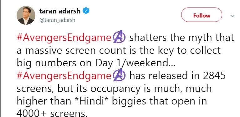 अवेंजर्स एंडगेम को लेकर ऐसे कयास लगाए जा रहे हैं कि फिल्म तीसरे दिन की कमाई को मिलाकर 150 करोड़ के क्लब में भारत में शामिल हो जाएगी। जानिए फिल्म कितनी स्क्रीन्स पर किया गया रिलीज-