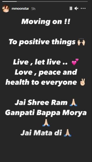 राज और मुनमुन अपने अफेयर की खबरों से बेहद खफा हैं। ऐसे में राज अंदकत के बाद मुनमुन दत्ता ने अपने इंस्टाग्राम से एक के बाद एक पोस्ट किए। हालांकि गुस्सा शांत होने के बाद मुनमुन ने अपने पोस्ट डिलीट कर दिए। इसके बाद उन्होंने अपनी इंस्टा स्टोरी पर एक पॉजिटिव नोट लिखा।