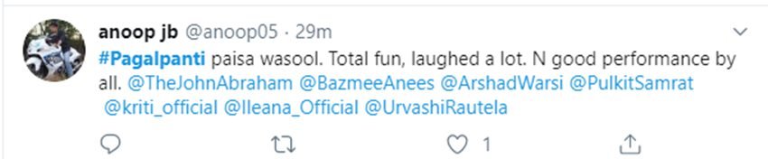 पागलपंती को लेकर सोशल मीडिया यूजर्स काफी मजाक बना रहे हैं। फिल्म को लेकर काफी नाकारात्मक कमेंट्स आ रहे हैं। फिल्म को टॉर्चर बता रहे हैं।