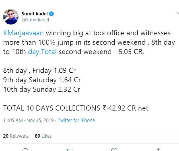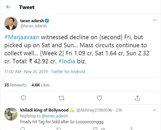 — taran adarsh (@taran_adarsh) November 25, 2019