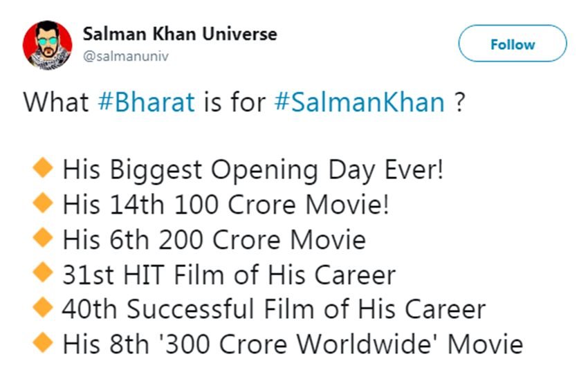 सलमान खान के फैन्स लगातार अपना रिएक्शन जाहिर कर रहे हैं। एक फैन ने बताया है कि सलमान की भारत आखिर क्यों खास है-