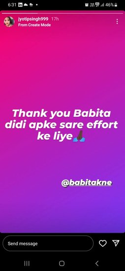 इसके साथ ही पवन सिंह की वाइफ ज्योति सिंह ने भी सोशल मीडिया पर एक पोस्ट शेयर की है, जिससे कयास लगाए जा रहे हैं कि इनके बीच सबकुछ एक बार फिर से ठीक हो गया है। ज्योति ने इंस्टाग्राम पर एक स्टोरी शेयर की है। इसमें लिखा है, ‘थैंक्यू बेबिता दीदी। आपकी सभी कोशिशों के लिए शुक्रिया।’ उनकी ये पोस्ट सोशल मीडिया पर वायरल हो रही है।