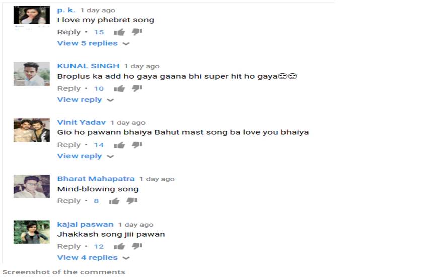 इस गाने को सुनने के बाद कुणाल सिंह ने लिखा कि ‘बोरोप्लस का एड हो गया गाना भी सुपरहिट हो गया।’ विनीत यादव ने लिखा कि ‘बहुत मस्त सॉन्ग बा।’ काजल पासवान ने लिखा ‘मस्त गाना।’ कई लोग इस गाने को अपने फेवरेट सॉन्ग भी बता रहे हैं। आपको बता दें कि पवन सिंह की आने वाली फिल्म ‘मां तुझे सलाम’ के निर्देशक असलम शेख हैं। फिल्म को प्रोड्यूस किया है अभय सिन्हा और समीर आफताब ने। फिल्म के को-प्रोड्यूर के तौर पर बालेश जैन ने काम किया है। यह फिल्म यशी फिलम्स के बैनर तले बनी है। उम्मीद है कि यह फिल्म अगले शुक्रवार यानी (10 अगस्त) तक रुपहले पर्दे पर आएगी। फिल्म के आने से पहले ही फिल्म का गाना हिट हो चुका है।