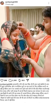 भोजपुरी पावरस्टार पवन सिंह इस वक्त अंजलि राघव के साथ अपने वीडियो को लेकर चर्चा में हैं। इसी बीच उनकी पत्नी ज्योति ने उनके साथ एक तस्वीर शेयर करते हुए पोस्ट लिखा है, जिसमें उनका दर्द साफ नजर आ रहा है। ज्योति ने बताया है कि वो कई महीनों से अपने पति से संपर्क करने की कोशिश कर रही हैं, लेकिन उन्हें कोई जवाब नहीं मिल रहा है, जिसके बाद उनके पास आत्मदाह के अलावा कोई ऑप्शन नहीं बचा है।
