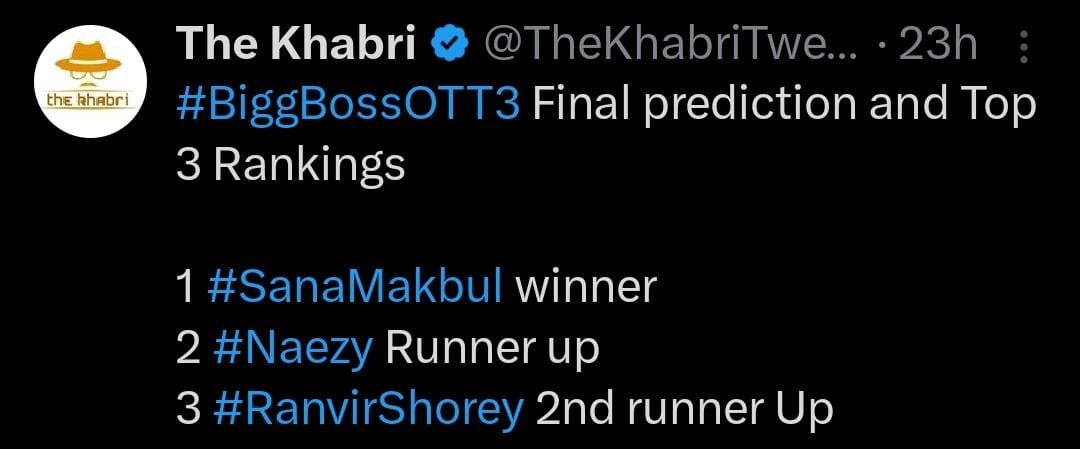 सोशल मीडिया पर बिग बॉस ओटीटी 3 के विनर का नाम लीक हो चुका है। यहां पढ़ें पूरी खबर