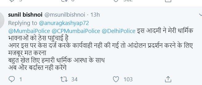 अनराग कश्यप को लेकर लोग भड़कते नजर आ रहे हैं। यूजर्स कह रहे हैं कि 'इस व्यक्ति ने हमारी भावनाओं को आहत किया है।'