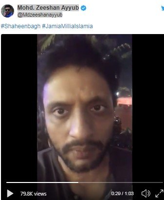 Mohd. Zeeshan Ayyub ने भी अपना एक वीडियो शेयर किया है। वह कहते हैं कि मेरी अपील जामिया और ओखला के लोगों से है। जितने लोग हो सके शाहीन बाग में रहिए। 2 बसें देखी गई हैं, जिसमें पारा मिलिट्री के लोग हैं।