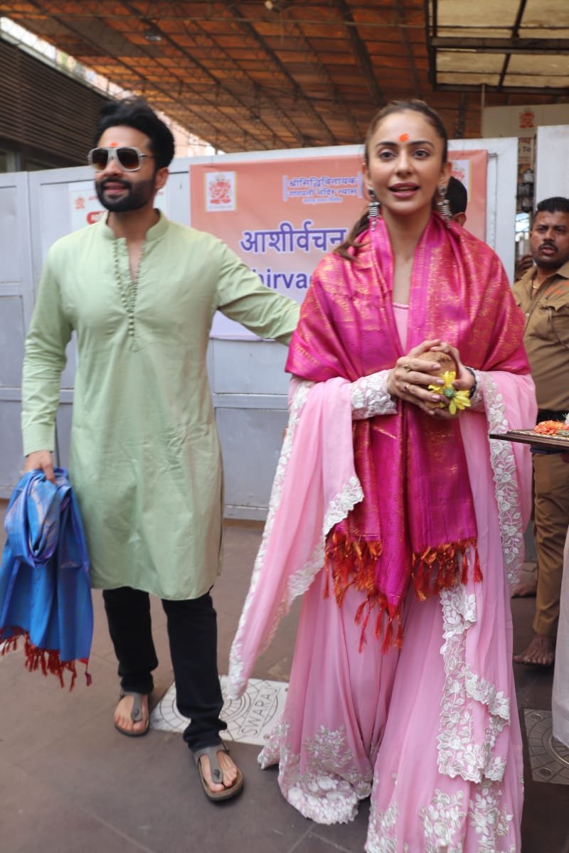 रकुलप्रीत सिंह और जैकी भगनानी 21 फरवरी को शादी कर रहे हैं। दोनों अपनी शादी का कार्ड लेकर सिद्धिविनायक आशीर्वाद लेने पहुंचे। उन्होंने शादी का कार्ड मंदिर में भेंट किया।