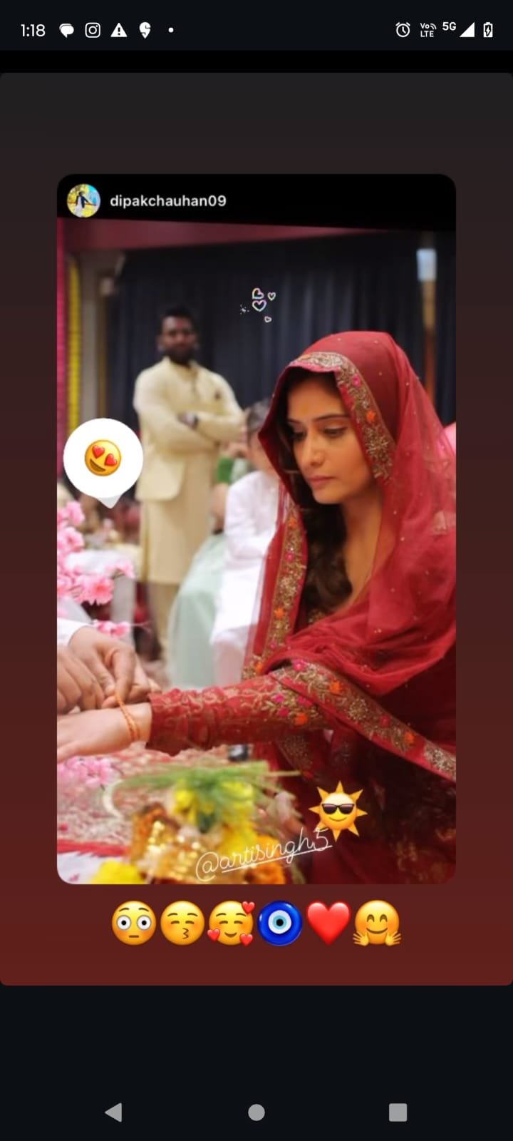 आरती सिंह जल्द शादी करने वाली हैं और उनकी शादी की रस्में शुरू हो चुकी हैं। आरती ने इंस्टाग्राम स्टोरी पर एक तस्वीर शेयर की है और वो तस्वीर उनके मंगेतर की स्टोरी पर भी लगी है। जिसमें आरती लाल सूट पहनकर पूजा में बैठी हैं और वह दूर खड़े उन्हें देख रहे हैं।