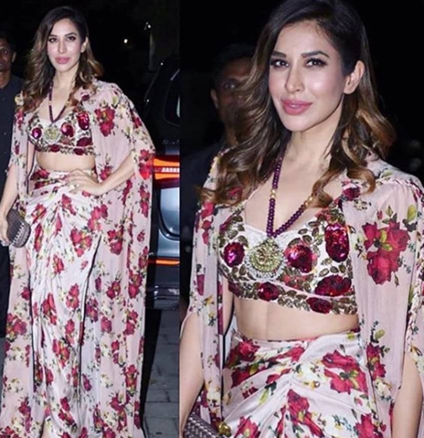 सूफी चौधरी फ्लॉलेस पीच ड्रेस में दिवाली पार्टी में पहुंचीं।