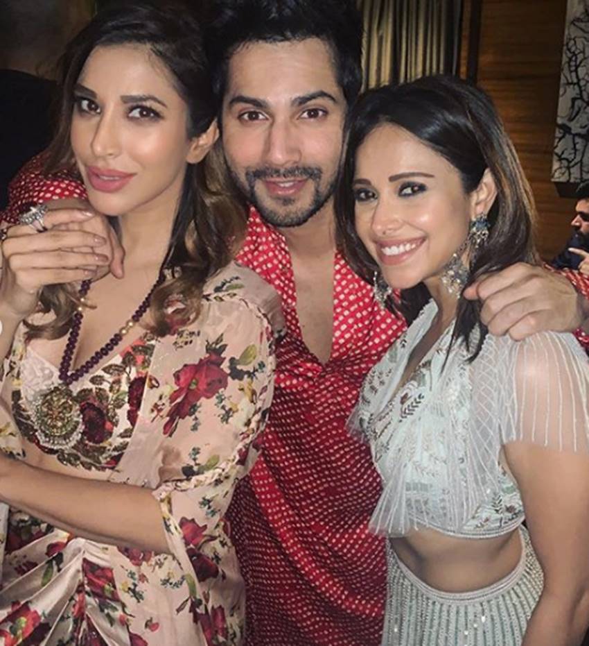 पार्टी में बॉलीवुड एक्टर वरुण धवन के साथ सोफी चौधरी और नुसरत के साथ..