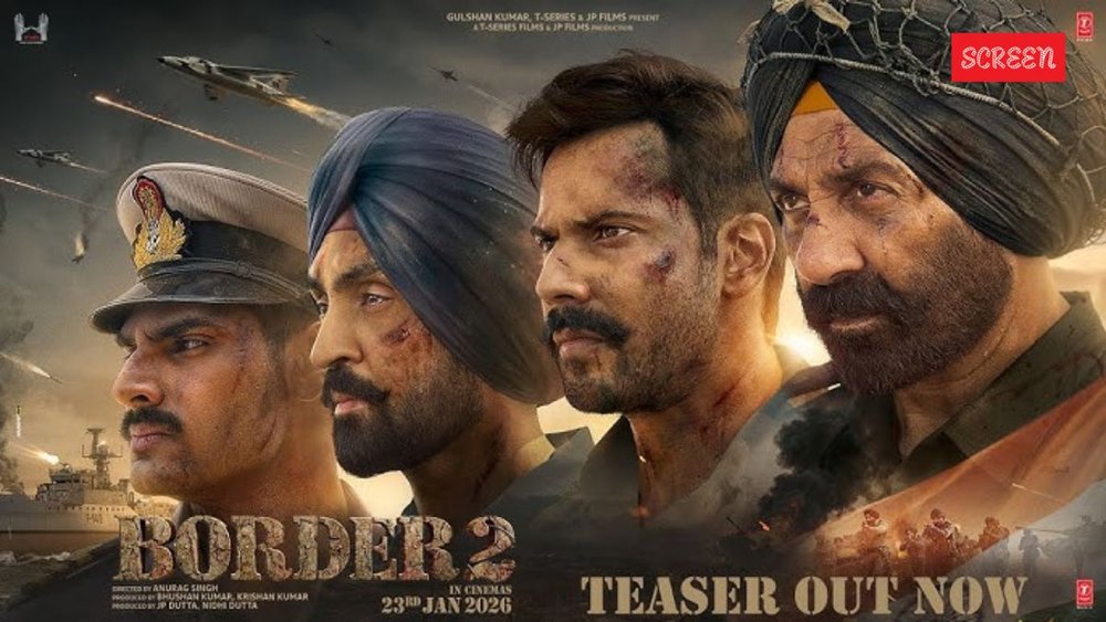 BORDER 2 Teaser: सनी देओल, दिलजीत दोसांझ, अहान शेट्टी और वरुण धवन जैसे सितारों से सजी फिल्म ‘बॉर्डर 2’ का जबरदस्त टीज़र रिलीज़ हो गया है। मेकर्स ने पहले ही ऐलान किया था कि विजय दिवस के दिन ये टीज़र रिलीज़ किया जाएगा और तय समय पर लोगों को फिल्म की झलकी देखने को मिली। फिल्म के टीज़र ने फैंस को उत्साहित कर दिया है।