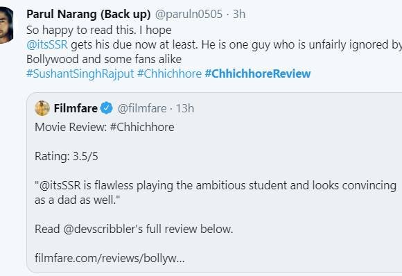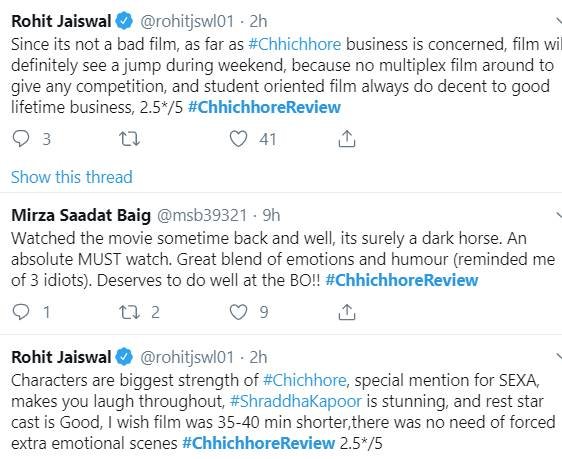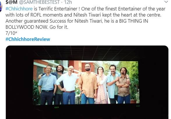 छिछोरेको अच्छे रिव्यूज और रटिंग्स मिल रहे हैं। ऐसे में लोग कुछ ऐसे रिएक्शन दे रहे हैं...