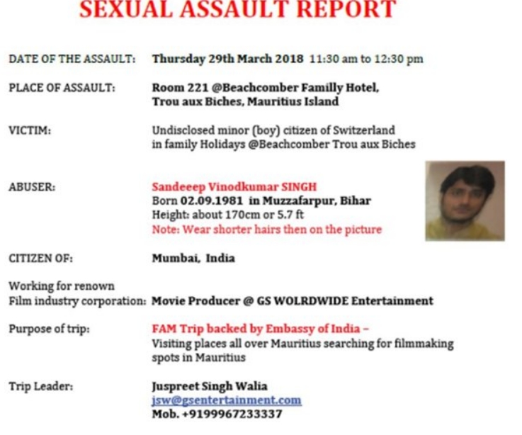 खबरों की मानें तो 37 साल के निर्माता संदीप अपनी फिल्म के शूटिंग के लिए लोकेशन तलाशने विदेश गए थे। 29 मार्च 2018 को यह घटना हुई। बिहार के मुजफ्फरपुर में जन्मे संदीप विनोद कुमार सिंह से होटल में एक लड़का फिल्मों और म्यूजिक से जुड़ी जानकारी लेने के लिए आया। संदीप बात करते हुए लड़के को अपने कमरे में लेकर चले गए और वहां उसके साथ ओरल सेक्स किया।