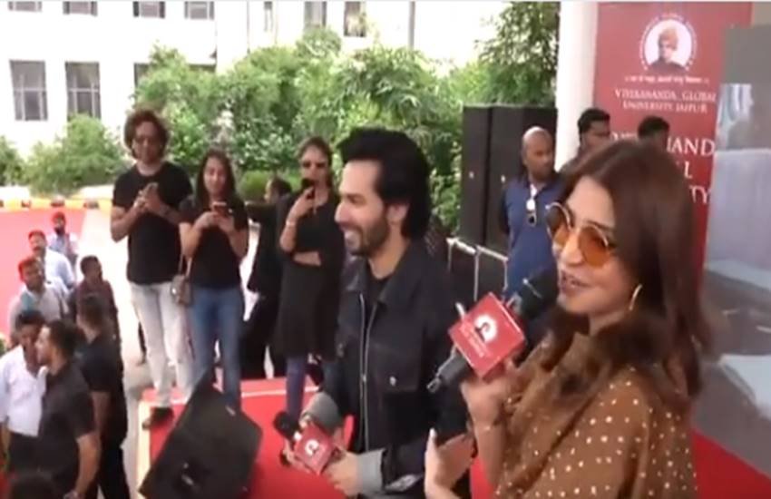 वरूण धवन और अनुष्का शर्मा अपनी फिल्म सुई धागा के प्रमोशन के चलते काफी व्यस्त हैं। हाल ही में वरूण और अनुष्का अपनी फिल्म प्रमोशन के सिलसिले में विवेकानंद यूनिवर्सिटी पहुंचे थे। वरूण और अनुष्का जैसे ही स्टेज पर भीड़ को संबोधित करने लगे, वहां मौजूद लोग कोहली कोहली चिल्लाने लगे। विराट कोहली इस समय इंग्लैंड में टेस्ट सीरीज़ खेल रहे हैं। अनुष्का भी इस दौरान काफी अच्छे मूड में नज़र आ रही थीं।  उन्होंने कहा ‘जी हां, सबको उनसे प्रेम है, मुझे भी है। सबको उनकी याद आ रही है, मुझे भी याद आ रही है। लेकिन अभी हमें सुई धागा पर फोकस करना चाहिए और फिर हम आपको दिखाने वाले हैं इस फिल्म का पहला गाना, चाव लागा।’