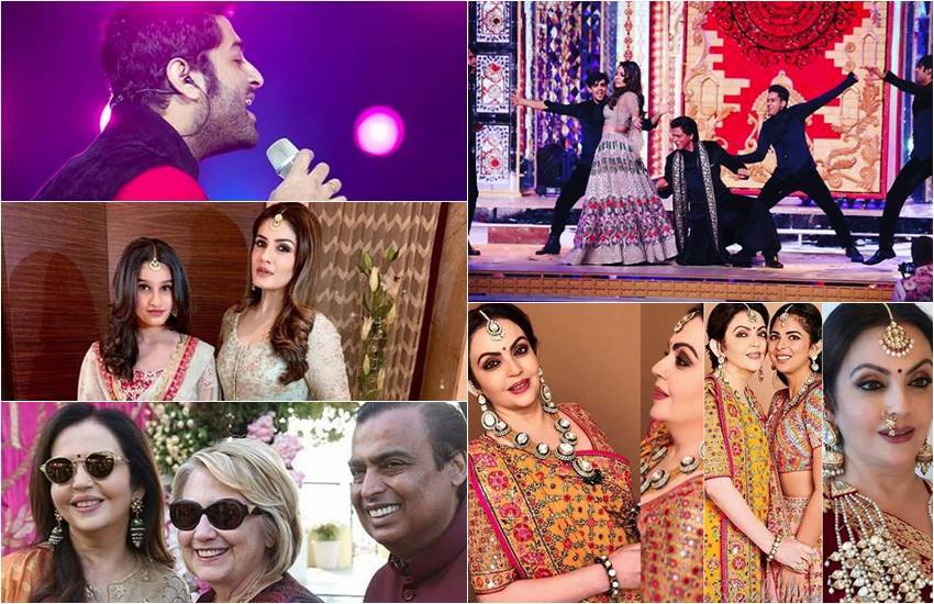 प्री-वेडिंग सेलिब्रेशन में डीजे नाइट पर जहां ऐश्वर्या और अभिषेक ने ‘दिल धड़कने दो’ के गाने “गल्ला गुड़िया” पर डांस किया वहीं रणवीर सिंह और अभिषेक बच्चन ने अमिताभ बच्चन के गाने ‘जुम्मा चुम्मा’ पर डांस किया। इस पार्टी में आराध्या बच्चन ने भी राजस्थानी फॉक डांसर्स के साथ डांस परफॉर्मेंस दिया। गौरी खान ने पहली बार अपने पति शाहरूख खान के साथ स्टेज पर डांस किया। किंग खान बेहद रोमांटिक अंदाज में गौरी के साथ डांस करते दिखें। गौरी खान ने फैशन डिज़ाइनर फाल्गुनी का डिजाइन किया हुआ लहंगा पहना था और शाहरुख खान ने ब्लैक कलर की शेरवानी पहनी थी।