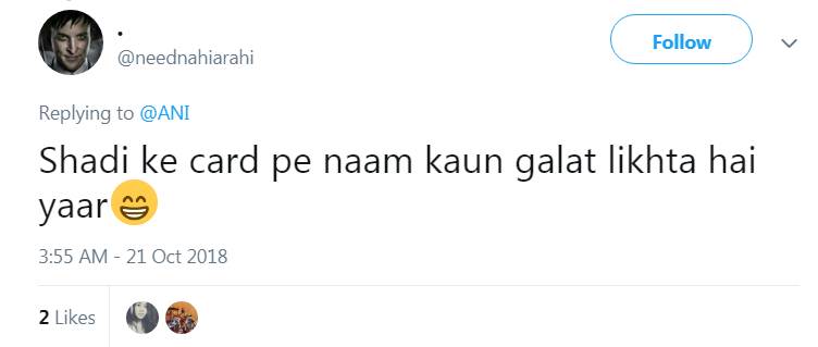 एक ट्विटर यूजर ने लिखा- अपने शादी के कार्ड में नाम कौन गलत लिखता है। जबकि अन्य यूजर ने लिखा- दो दिन तक कौन सी शादी होती है। एक यूजर ने तो दोनों को अपने सोशल मीडिया मैनेजर को बाहर निकालने तक की बात कही है। रणवीर और दीपिका ने फैन्स से किया अपना वादा पूरा किया है। एक इंटरव्यू के दौरान रणवीर-दीपिका ने कहा था कि शादी के बारे में जैसे ही सब तय होगा वह खुद मीडिया और फैन्स को जानकारी देंगे। शादी के वेन्यू को लेकर अभी तक कोई जानकारी सामने नहीं आई है। हालांकि बी-टाउन में ऐसे कयास लगाए जा रहे हैं कि दोनों इटली के लेक कोमो में शादी कर सकते हैं।