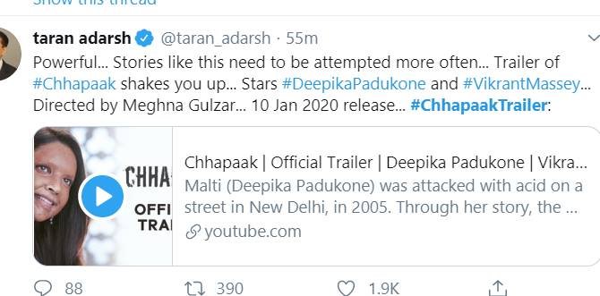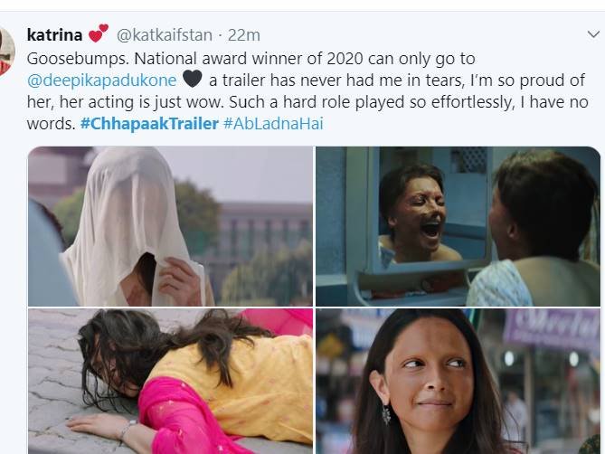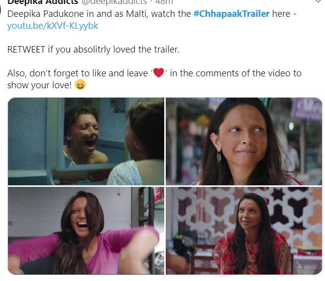 दीपिका पादुकोण तुम इंस्पिरेशन हो..दीपिका के फिल्म ट्रेलर को देख कर लोग कह रहे हैं- इतना सेंसेटिव इशू हैट्स ऑफ दीपू। दीपिका पादुकोण..