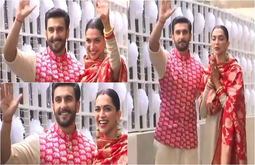 WATCH: Ranveer Singh and Deepika Padukone at Ranveer Singh's residence in Mumbai. They got married earlier this week in Italy's Lombardy pic.twitter.com/kgaiq87WTO