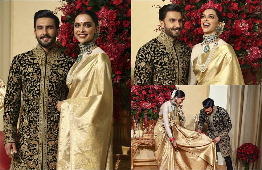 कपल ने रिसेप्शन में सब्यसाची का डिजाइनर आउटफिट पहना। ग्लोडन कलर की साड़ी में दीपिका बेहद खूबसूरत लग रही थीं तो वहीं रणवीर सिंह ब्लैक कलर की शेरवानी में काफी जच रहे थे। दीपवीर के रिसेप्शन में साउथ इंडियन डिशेज को रखा गया था। बताया जाता है कि दीपिका पादुकोण की मां उज्जला पादुकोण ने कई बार होटल जाकर खाने की टेस्टिंग की है। दीपवीर का रिसेप्शन लीला पैलेस होटल में आयोजित किया गया था। कहा जा रहा है कि मुंबई में होने वाले रिसेप्शन में इंडस्ट्री के दिग्गज सितारे शामिल होंगे। जिसमें शाहरुख खान, सलमान खान, अनुष्का शर्मा, विराट कोहली, अमिताभ बच्चन, अनिल कपूर, रेखा, अर्जुन कपूर, वरुण धवन समेत कई सितारों के नाम गेस्ट लिस्ट में शामिल हैं।