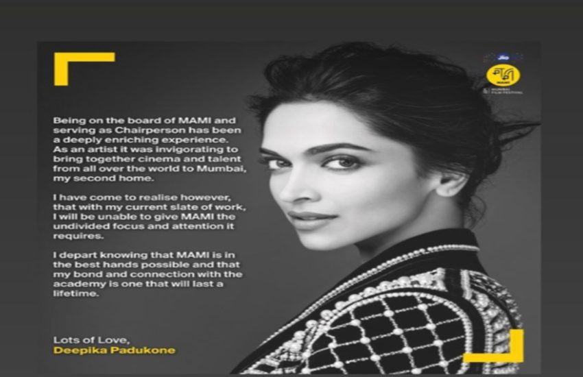 अपने इंस्टाग्राम स्टोरी में दीपिका ने लिखा, ‘MAMI के बोर्ड में होने के नाते और बतौर चेयरपर्सन सेवा करना बेहद शानदार अनुभव रहा। दुनिया भर से सिनेमा और प्रतिभा को साथ मुंबई में लाना, एक कलाकार के तौर पर मेरे लिए यह मजबूती देने वाला था, ये मेरा दूसरा घर था। हालांकि, मुझे यह एहसास हुआ है कि अपने हालिया काम के साथ, MAMI को उतना अटेंशन और फोकस नहीं दे पा रही हूं, जितनी जरूरत है।’