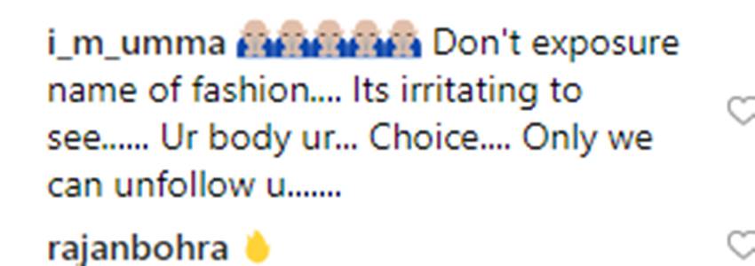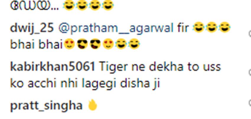 ऐसे में एक्ट्रेस की तस्वीर पर कमेंट्स की बाढ़ सी आ गई। दिशा के कुछ फॉलोअर्स को उनका ये अंदाज पसंद नहीं आया तो कुछ इस तस्वीर पर चुटकी लेने लगे। एक यूजर ने लिखा-‘कुछ तो शर्म कर लो दीदी’। एक यूजर ने लिखा- ‘टाइगर ने देखा तो उन्हें अच्छा नहीं लगेगा, दिशा जी।’ एक अन्य यूजर ने टाइगर को टैग करते हुए लिखा- भइया जी आप तो कुछ बोला करो।’ एक यूजर ने मस्ती लेते हुए लिख- ज्यादा गर्मी लग रही है दीदी तो एसी चला लो। तो किसी ने लिखा- बेल्ट के पैसे नहीं है क्या, देखो पैंट सरक रही है।