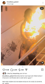 अब खुशबू ने निक्की हत्याकांड की एक तस्वीर शेयर करते हुए लिखा है, “मनीषा बहन के बाद अब निक्की बहन! कैरेक्टर सर्टिफिकेट देने वाले कहां गए? निक्की ने कभी सोचा नहीं होगा कि वो ऐसे इस दुनिया से जाएगी। मनीषा बहन के बाद अब निक्की बहन!”