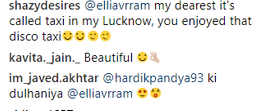 इस तस्वीर में एली ने ब्लू कलर का लहंगा पहना हुआ है। एली इस खूबसूरत लहंगे में बिलकुल दुल्हन जैसी लग रही हैं। वहीं एली के फैंस भी उनकी इस तस्वीर को काफी पसंद कर रहे हैं। एली ने इस तस्वीर को कैप्शन देते हुए लिखा है, ‘मैं खुद को गाड़ी से उतरने से रोक नहीं पा रही हूं। मतलब, ये इंडियन डिस्को ट्रक काफी कूल है। #ओल्ड इज गोल्ड #इंडियन #90s #डिस्को।’