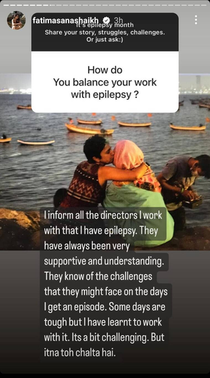 एक्ट्रेस से किसी ने सवाल किया कि वो इस बीमारी के साथ काम कैसे कर लेती हैं। इसपर एक्ट्रेस ने बताया कि वो डायरेक्टर्स को पहले ही बता देती हैं। फातिमा ने कहा कि डायरेक्टर्स ने हमेशा ये बात समझी है।
